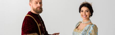 Medieval royal people, men and women dressed in Renaissance clothes against dark background. Family portrait