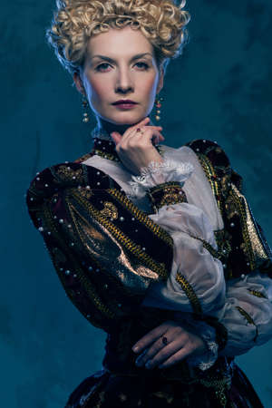 Portrait of a beautiful young woman in a medieval dress. Retro style.