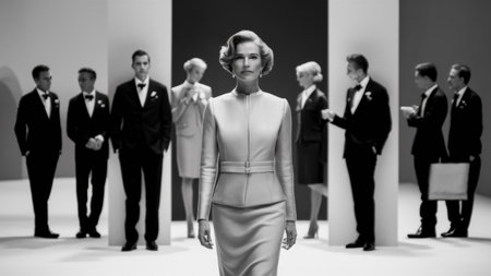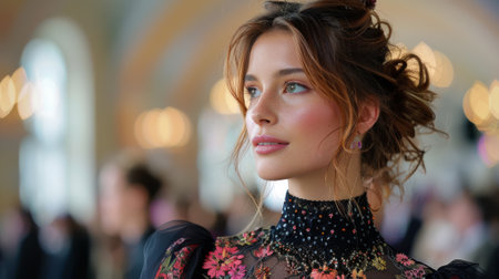 Prague Spring International Music Festival Prompts (Czech Republic). woman in fashion collection inspired by elegance, sophistication, and cultural richness of the event. --no logo, brand, descriptions --ar 16:9 --style raw --stylize 700 Job ID: b3740c21-bcea-4877-ab89-00301fd25572