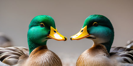 AI Generated. Three Colorful Ducks with Bright Green Heads and Yellow Beaks