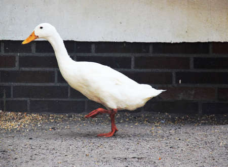 White duck walking on a farm