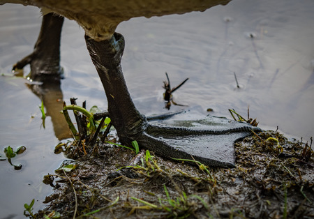 close up canadian goose webbed feet in mud