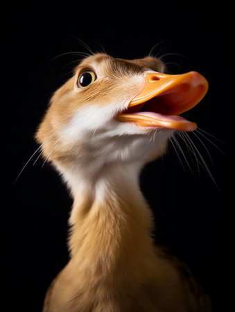 A close up of a duck with its mouth open and tongue out, AI