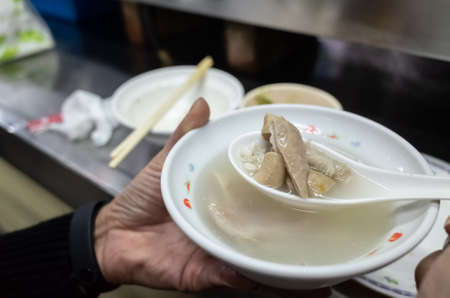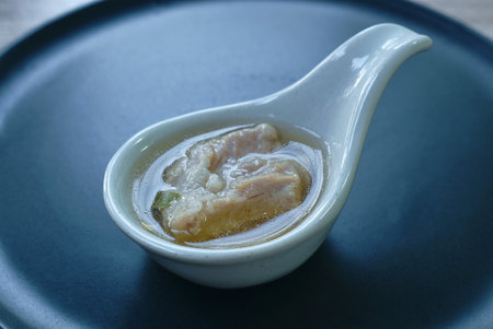 Milkfish skin soup, distinctive and famous seafood cuisine of Taiwanese street food in Tainan.