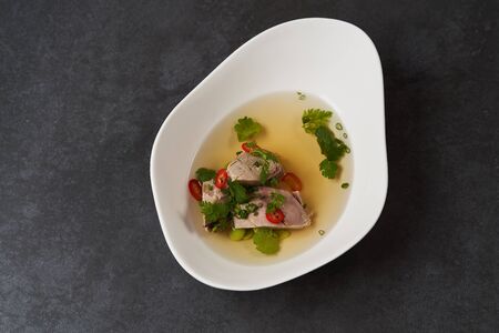 close up pork soup for thai food menu