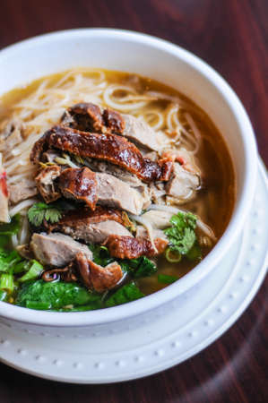 delicious rice noodle soup with stewed duck