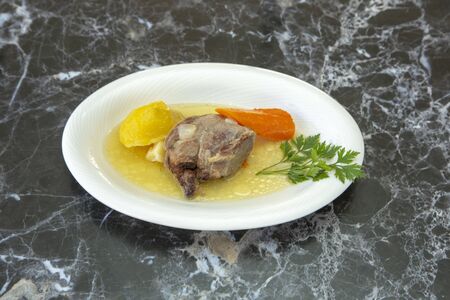 Waterzooi soup on a plate, national cuisine of Belgium