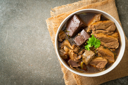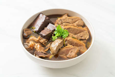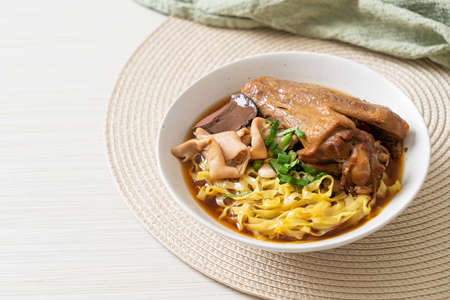 egg noodles with stewed and braised duck in brown soup - Asian food style