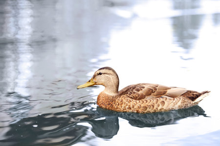 Female of Anas platyrhynchos, commonly known as Mallard duck swimming on a lake