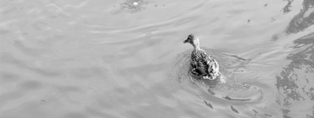 A horizontal shot of cute ducks swimming in a lake. Wild ducks in nature.