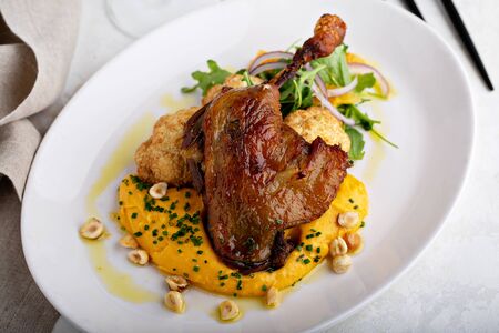 Duck leg confit in a restaurant
