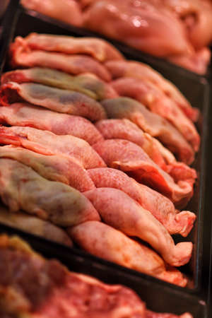 Heap of fresh raw meat food flesh background at shop supermarket