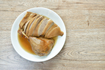 boiled duck meat dressing black soybean sauce chop and arranging on plate