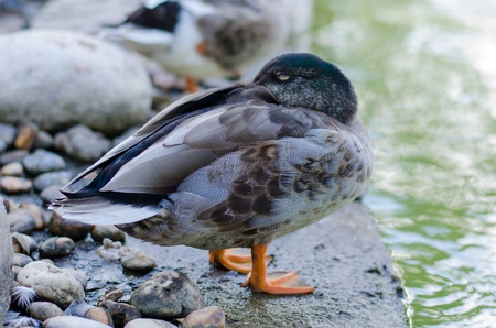 a beautiful duck sleeping