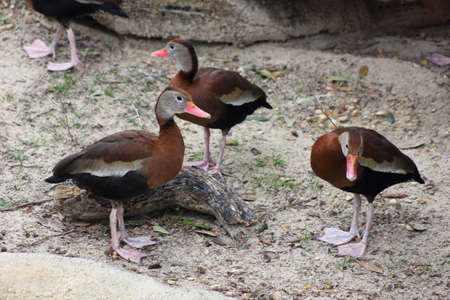 Flock of Black Bellied Whistling Duck sitting on a beach