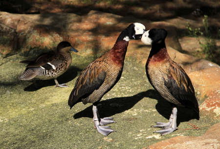 Close-up of three Wandering Whistling ducks ( Dendrocygna arcuata)