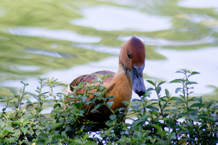 Duck (Dendrocygna bicolor), on the edge of the lake.