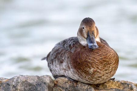 portrait of Common pochard female (Aythya ferina) on stone.