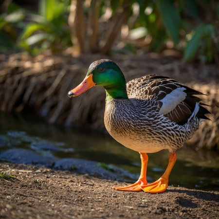 Dabbling ducks strolling around the pond of Reid Park Zoo