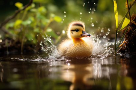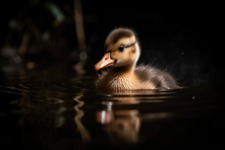 a newborn duckling swimming in a pond, created with generative ai