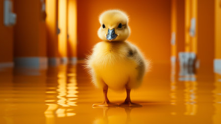 a funny duckling picture featuring a cute small animal rendered in cinema4d. the photo showcases a saturated color scheme with dark yellow and light orange tones. the artist, david nordahl, has used a soft-focus technique to create a lifelike representation, reminiscent of the works of eugene boudin. ai generated