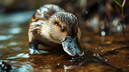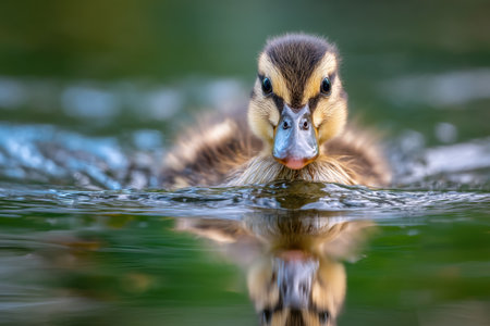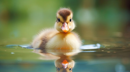 AI Generated. Innocent duckling swimming in the water happily Animal closeup