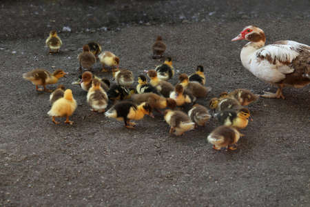 Muskovy Duck, cairina moschata, Mother and Ducklings