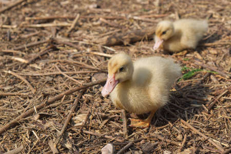 Baby Duck or Duckling in the Farm Lawn in the Morning.