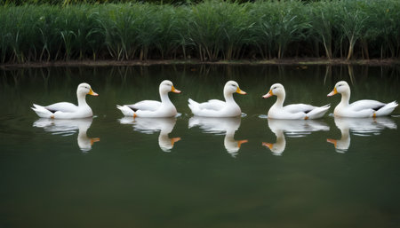 Serene Lineup of White Ducks