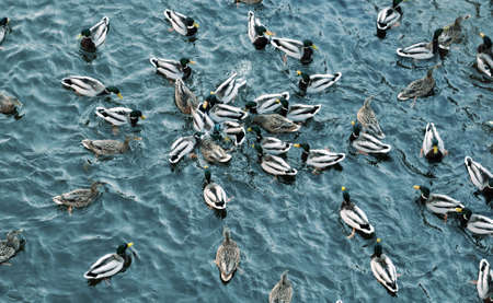 Ducks and drakes on the water in winter. motion blur.