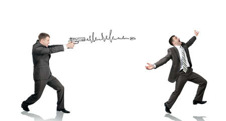 Businessman shooting another man isolated on white background