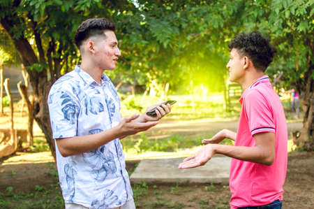 young man chatting with young man, two people arguing WITH COPY SPACE