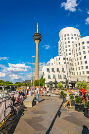 GERMANY, DUESSELDORF - AUGUST 13, 2020: Medienhafen. Dusseldorf cityscape with view on media harbor