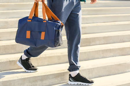 Athlete carries a gym bag after a workout, embodying a healthy, active lifestyle
