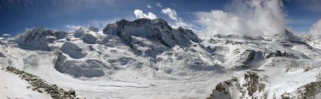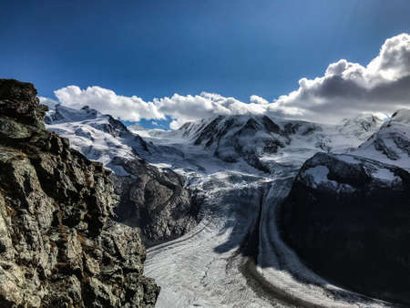 Glacier panorama in Switzerland. View from Gornergrat near Zermatt.
