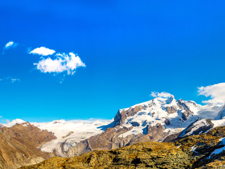Panoramic view of the Valais Alps, Monte Rosa and Gorner Glacier, Switzerland.
