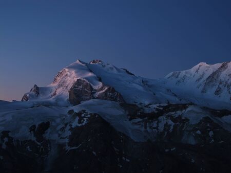 Nordend summit (4609m) in winter. View from Gornergrat, Zermatt, Switzerland.