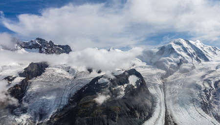 Aerial view of the Alps mountains in Switzerland. Glacier