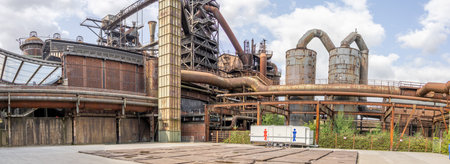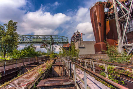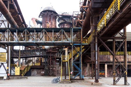 Industrial factory in Duisburg, Germany. Public park Landschaftspark, landmark and tourist attraction.