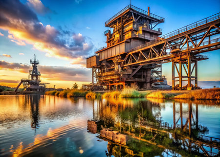 Ferropolis Industrial Monument on Gremminer See Peninsula, Germany - High Resolution Stock Photo