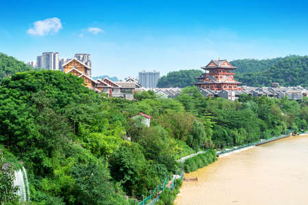 Architectural landscape on the bank of Liujiang River in Liuzhou