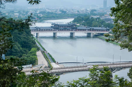 Aerial photography of the Wind and Rain Covered Bridge of the Dong Nationality in Sanjiang