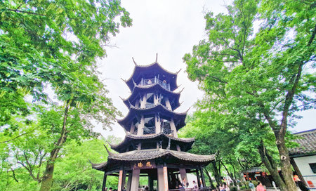 Ancient architecture temple pagoda in the park, Chongqing, China