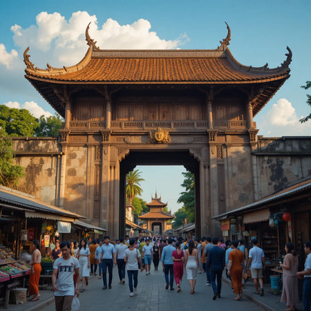 Unidentified people visit The Gate of Peace in Bangkok, Thailand.