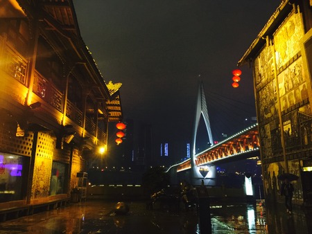 Chongqing, China- 8 Nov 2025: View of Xiahaoli Old Street in Chongqing, China. It is a historic, culturally rich street known for its nostalgic atmosphere, architecture, and slow pace of life