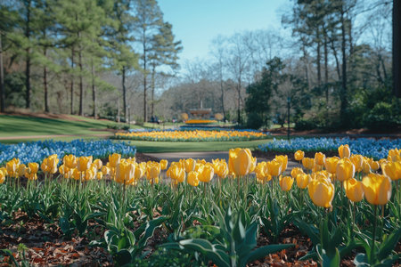 gorgeous tulip garden, with blooms in full bloom and vibrant foliage, created with generative ai