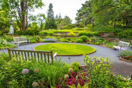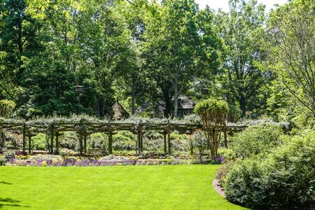 Flowers and trees at Sherwood Gardens Park in Guilford, Baltimore, Maryland.