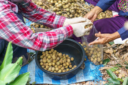 Longan harvesting by Asian farmers