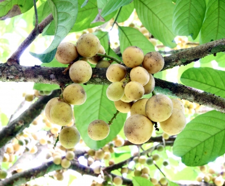 Bunch of fresh Longkong fruit on its tree