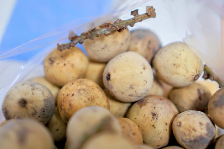 Selective focus of a exotic fruit most popular at South East Asia known as 'Langsat'
